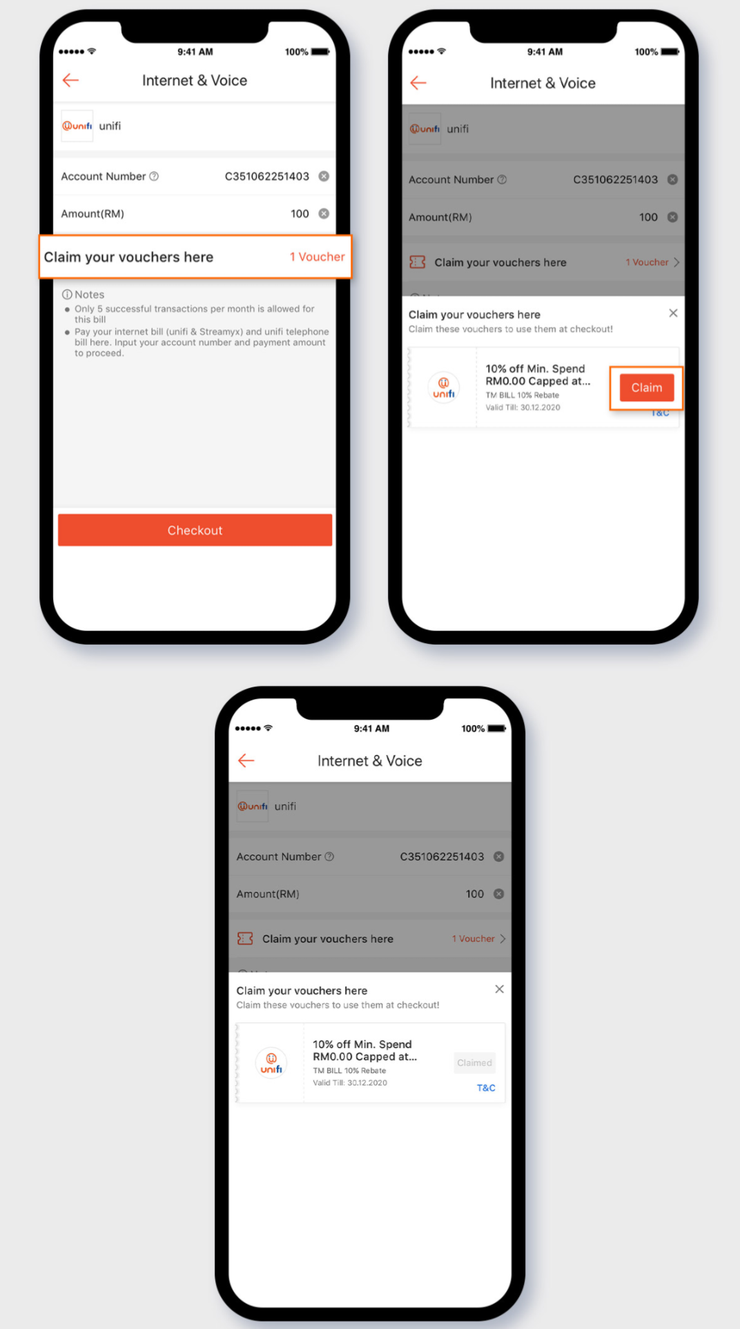 ※ 此优惠可适用于Unifi Home、Streamyx 和Voice Bills 账单!