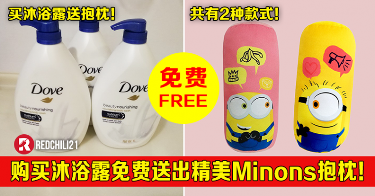 从即日起在Watsons 或Guardian 购买指定Dove 和Lux 沐浴露,可免费获得精美Minions 抱枕(Minions Bolster)!只需消费RM40 或以上就可免费获得一个Minions 抱枕!