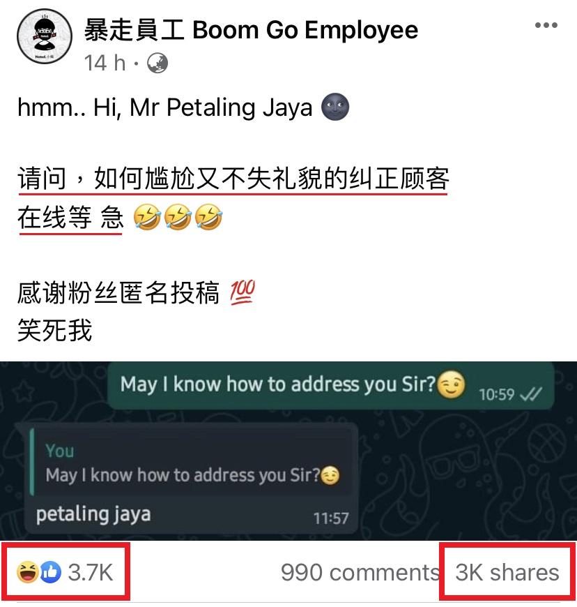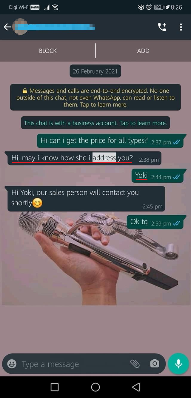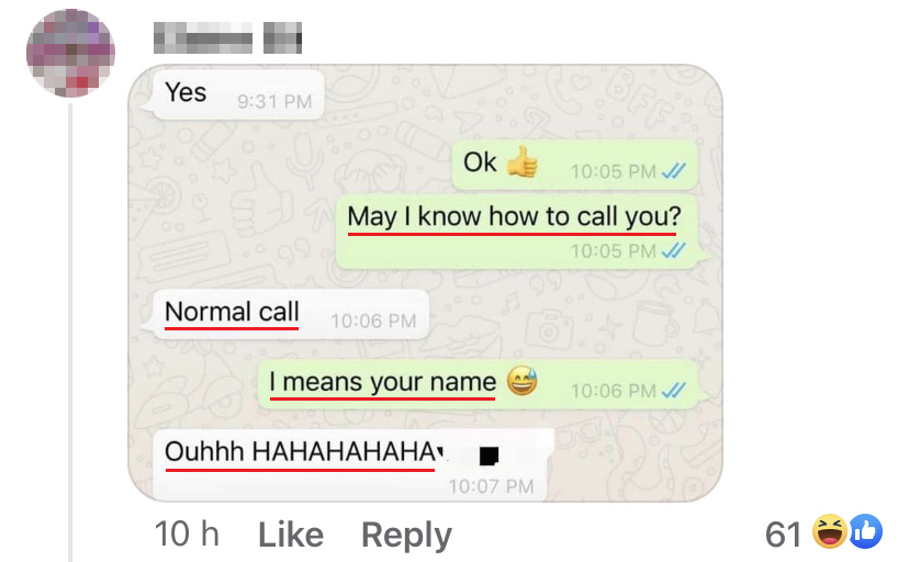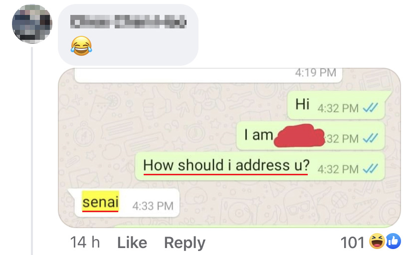 日前一名大马网友投稿分享一张 WhatsApp 截图,用英语传讯息问如何称呼对方,结果得到的回应是这样的!