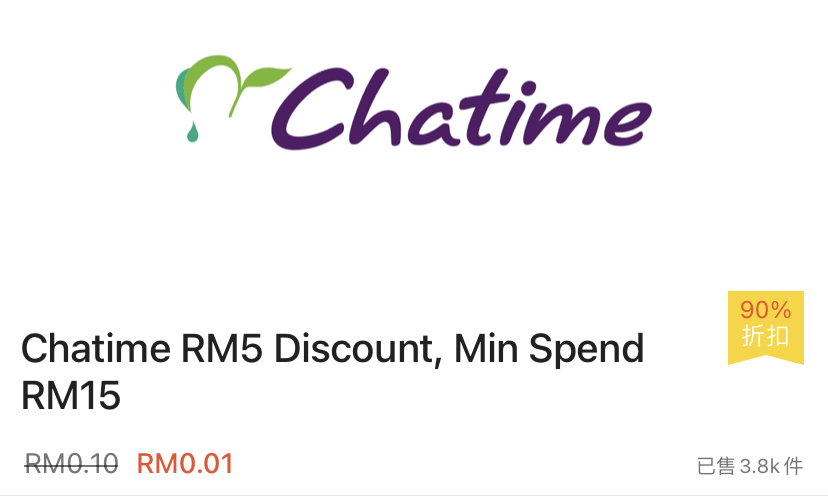 ▼ ⑤ Chatime – 消费满RM15可享有RM5折扣【点击这里】