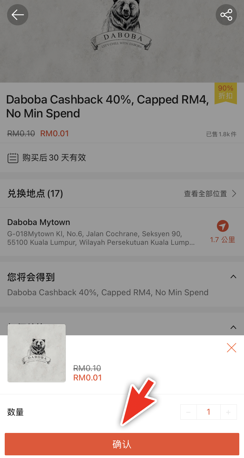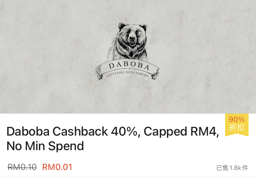 ▼ ⑦ Daboba – 40%现金回扣(最高折扣RM4 / 无需最低消费)【点击这里】