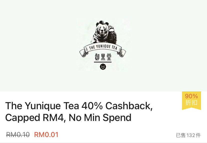 ▼ ⑥ The Yunique Tea – 40%现金回扣(最高折扣RM4 / 无需最低消费)【点击这里】