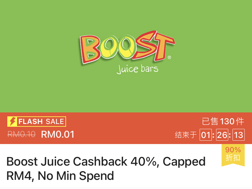 ▼ ① Boost Juice – 40%现金回扣(最高折扣RM4 / 无需最低消费)【点击这里】