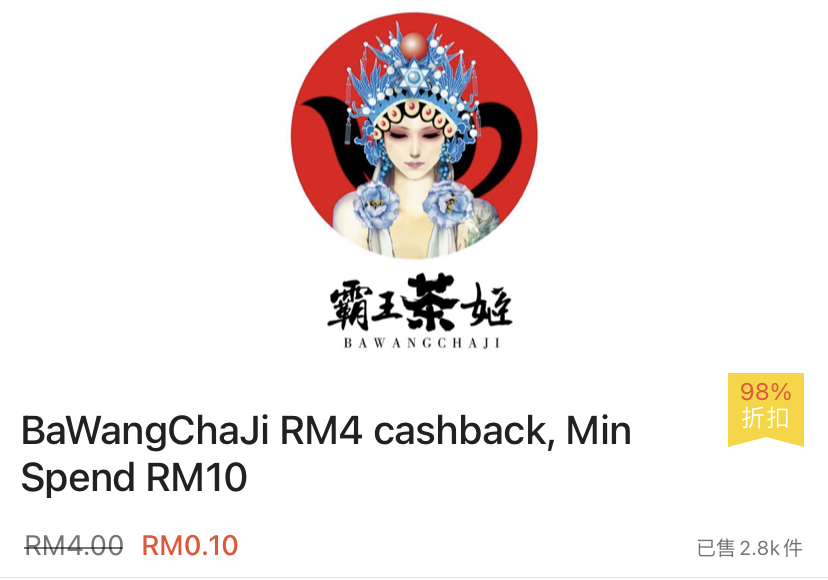 ▼ ⑨ BaWangChaJi – 消费满RM10可获RM4现金回扣【点击这里】