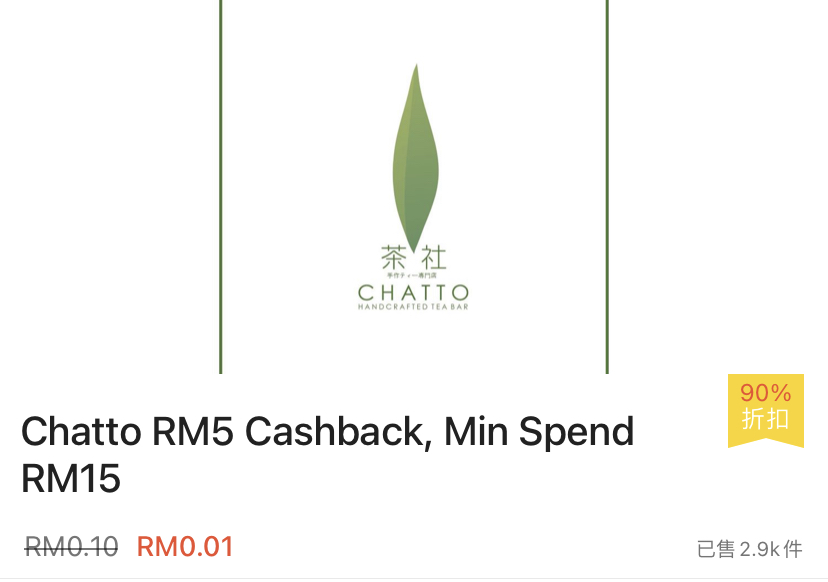 ▼ ④ Chatto – 消费满RM15可获RM5现金回扣【点击这里】