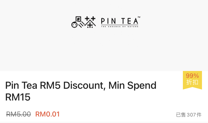 ▼ ③ Pin Tea – 消费满RM15可享有RM5折扣【点击这里】