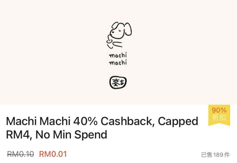 ▼ ⑩ Machi Machi – 40%现金回扣(最高折扣RM4 / 无需最低消费)【点击这里】