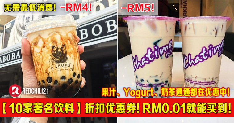 想来杯饮料减减压?现在马上在 Shopee 购买折扣优惠券吧!多达10家的著名饮料连锁店,最低仅需RM0.01就能买到超值折扣券!需要注意的是,这是限时优惠哦!