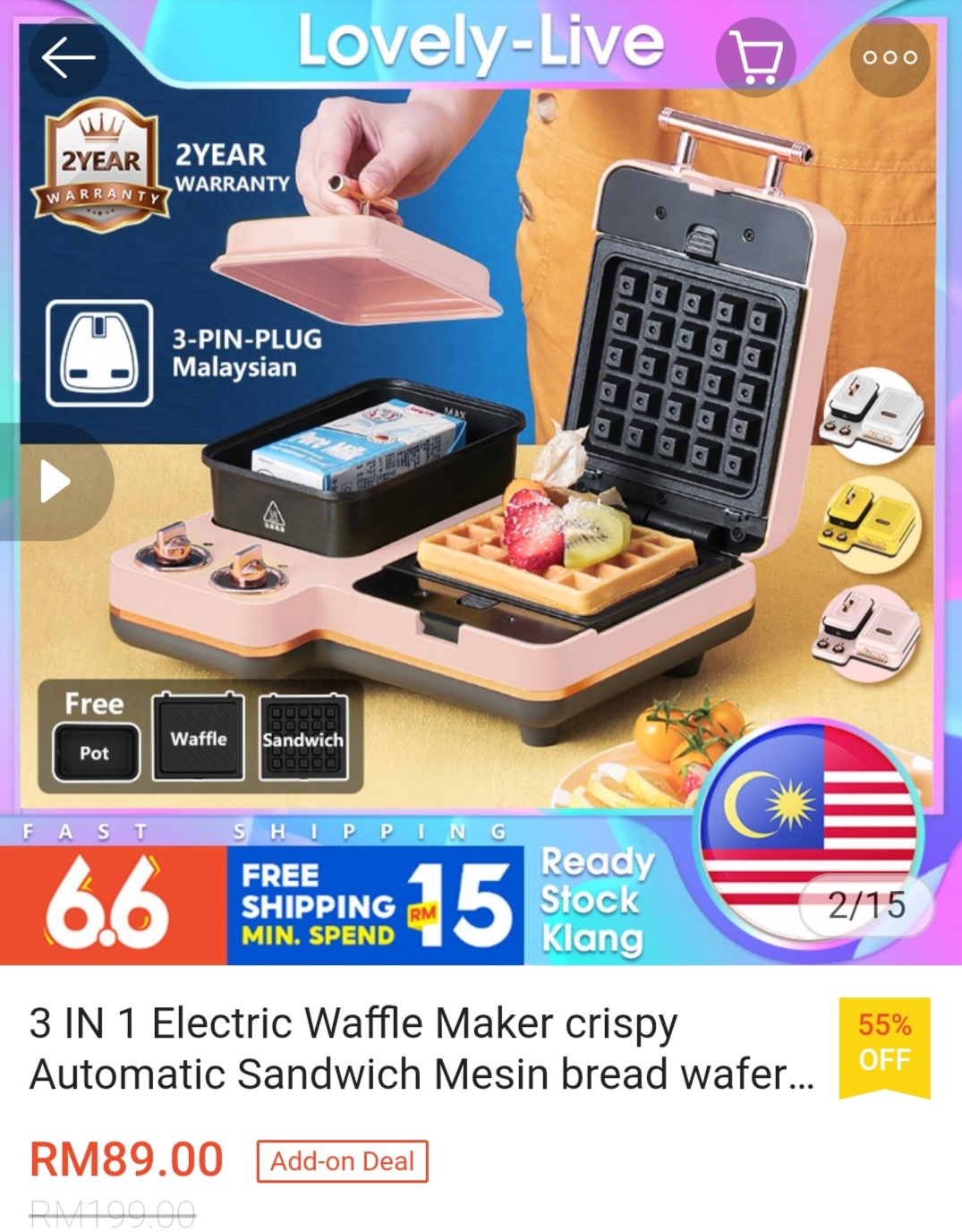 ※ 注意,以上一些Waffle 早餐机在特定在6月6日的12am -2am抢购,才可享有特别优惠价!