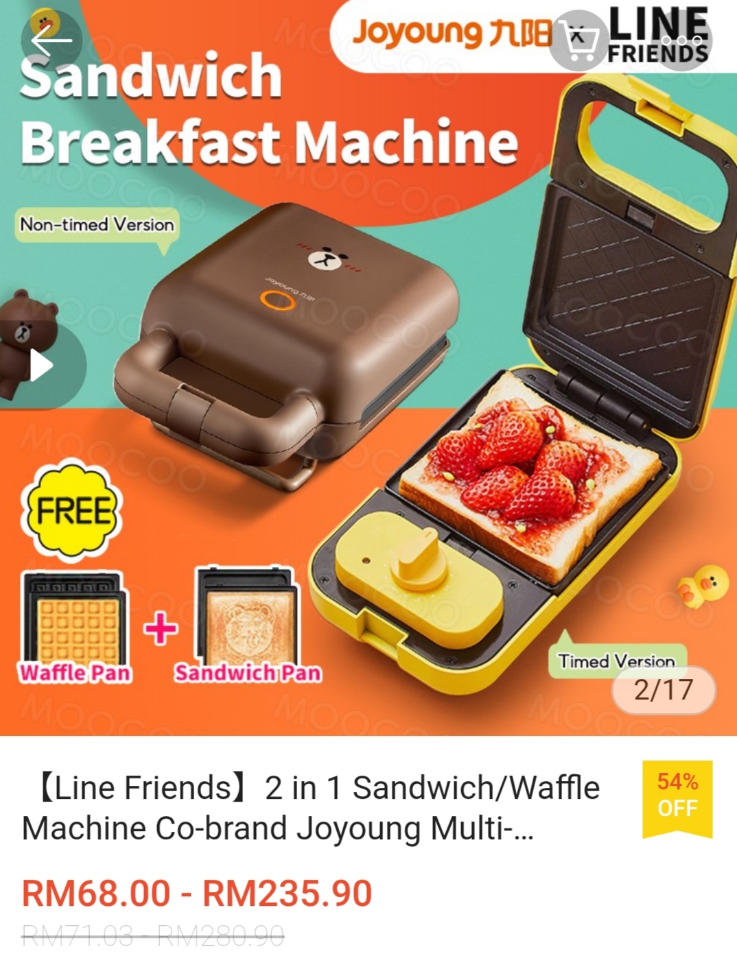 ⑥ Joyoung 2 in 1 Sandwich/Waffle Machine Maker – RM280.90 RM179.90 – RM235.90