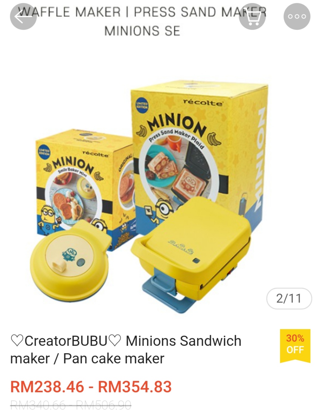 ③ Minions Sandwich maker / Pan cake maker – RM340.66 – RM506.90 RM238.46 – RM354.83