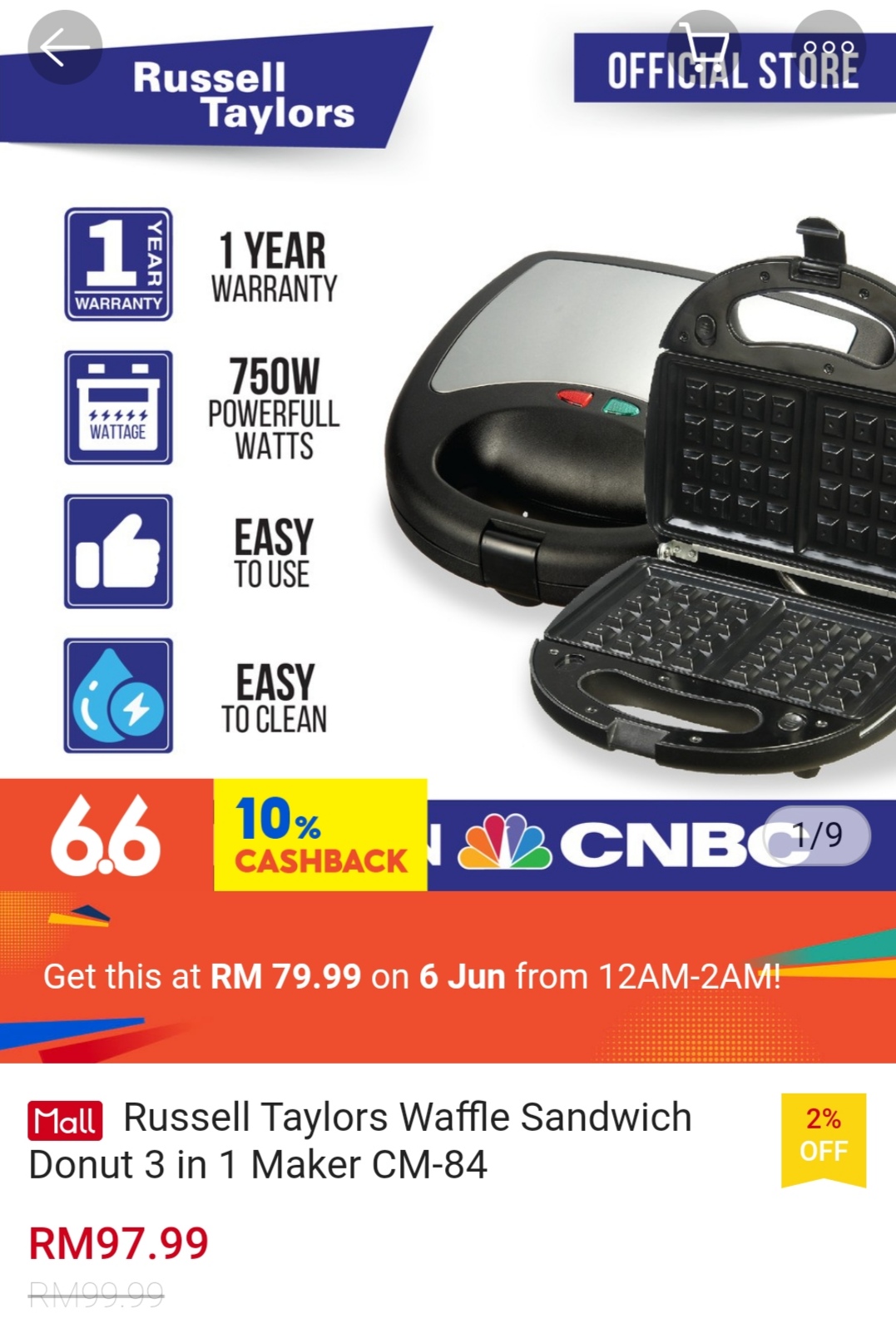 ② Russell Taylors Waffle Sandwich Donut 3 in 1 Maker CM-84 – RM99.99 RM79.99(6月6日限时优惠价)
