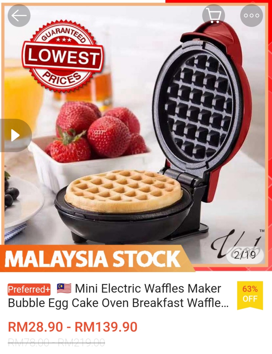 ④ Mini Electric Waffles Maker Bubble Egg Cake Oven Breakfast Waffle Machine – RM78 RM28.90