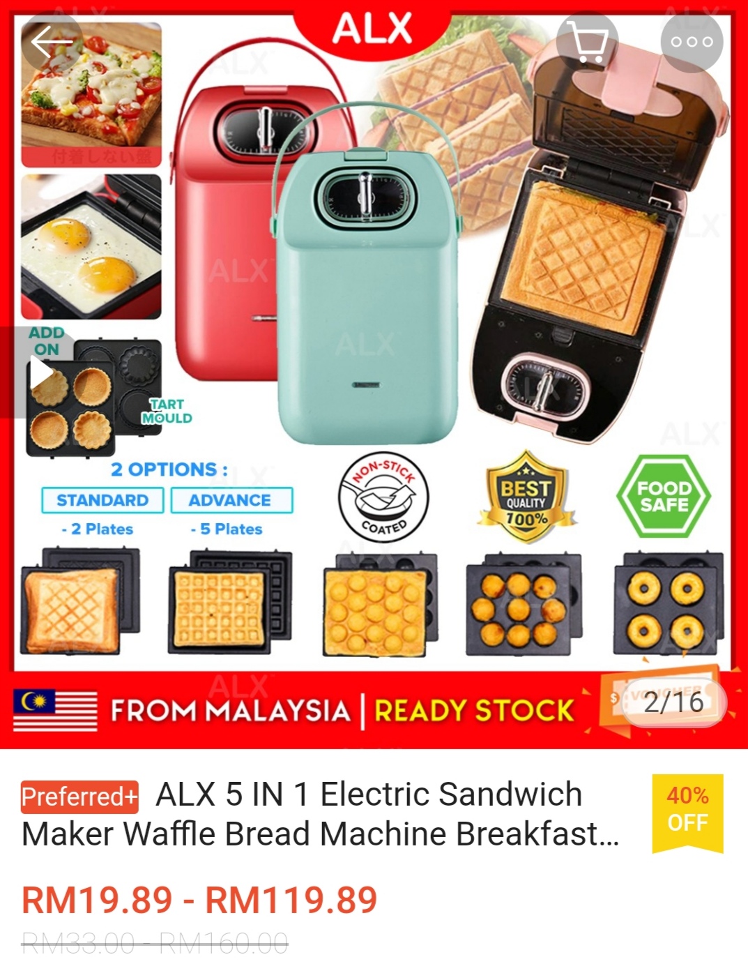 ⑤ ALX 5 IN 1 Electric Sandwich Maker Waffle Bread Machine – RM135 – RM160 RM98.89 – RM119.89