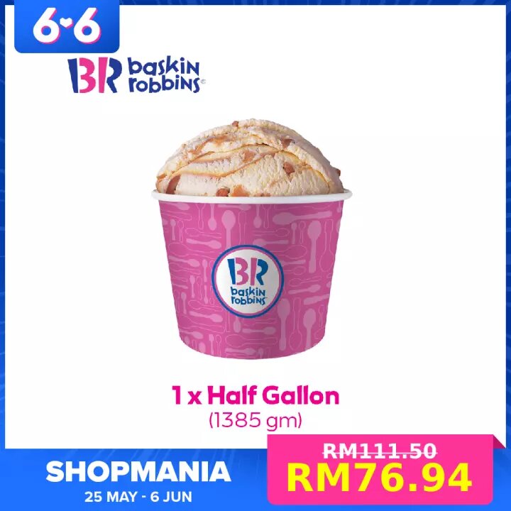 iii)Baskin Robbins Handpacked Ice Cream – 1 x Half Gallon Lazat F&B eCoupon – RM111.50 RM76.94;购买【点击这里】