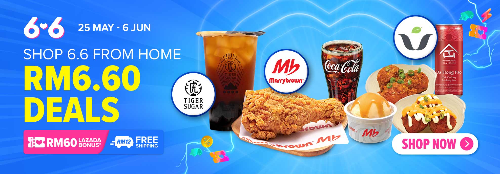 促销活动:Lazada【Shop 6.6 From Home】美食饮料优惠!