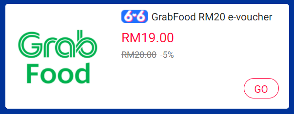 ii)GrabFood RM20 e-voucher – RM20 RM19;购买【点击这里】