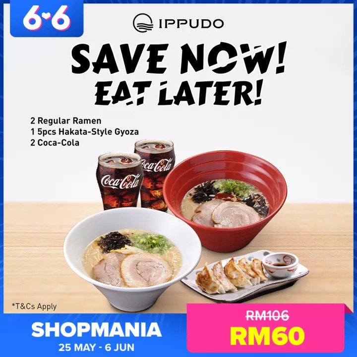i)2x Regular Ramen + 5pcs Hakata Style Gyoza + 2x Coke (NON-HALAL) – RM106 RM60;购买【点击这里】