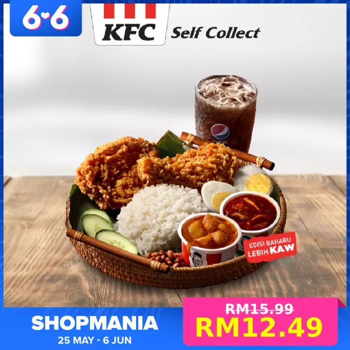 iii)KFC Self Collect: 2-pc Nasi Lemak KFC Combo – RM15.99 RM12.49;购买【点击这里】