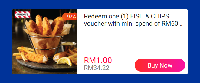 iii)Redeem 1 FISH & CHIPS voucher with min. spend of RM60 subtotal – RM34.22 RM1;购买【点击这里】