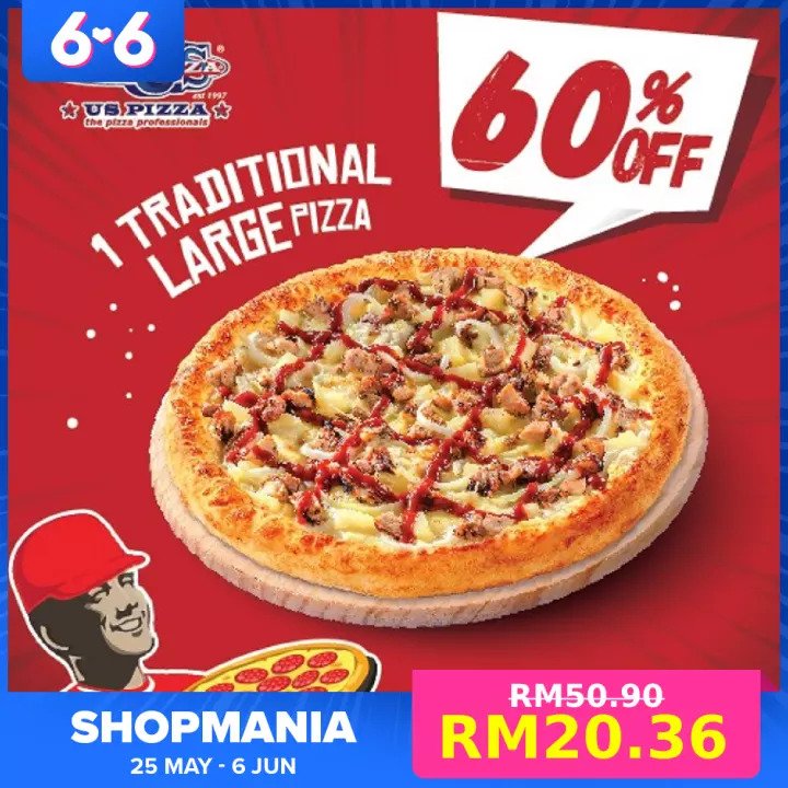 ii)Large Pizza All Traditional Flavour – RM50.90 RM20.36;购买【点击这里】