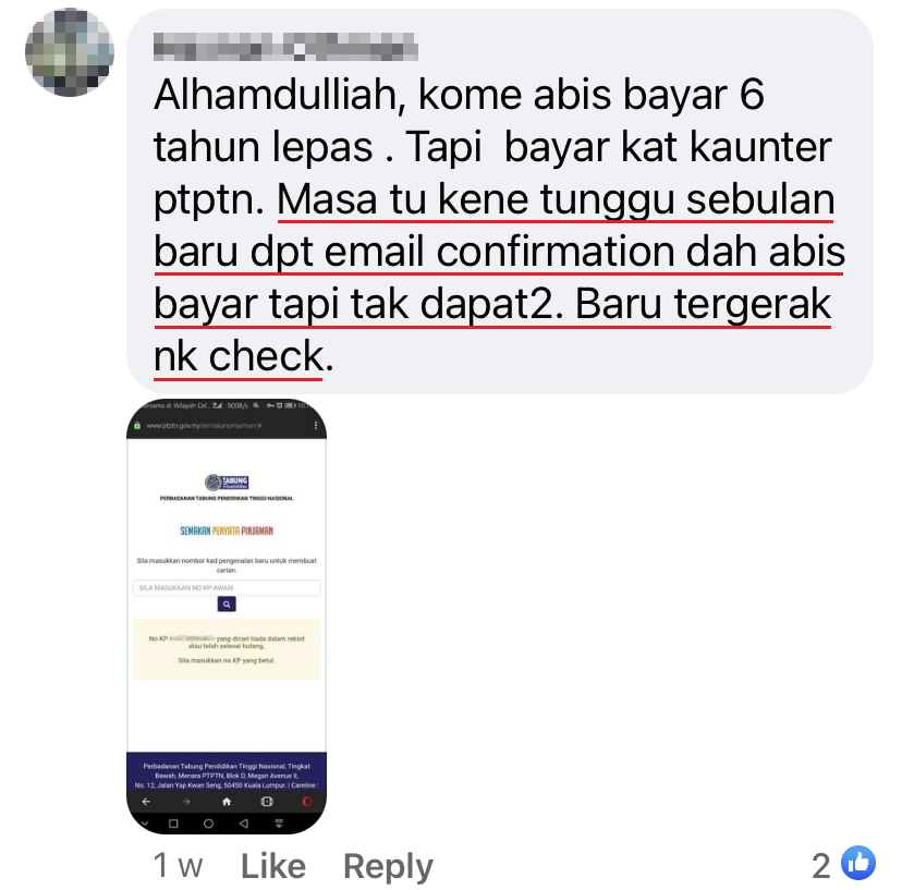 ▼ 记得!全数偿还PTPTN以后一定要拿到信!