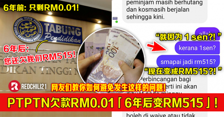 你的国家高等教育基金贷款(PTPTN)已经还清了吗?要注意了!一名大马女子日前在脸书PO文分享自己的经历,6年前她的PTPTN欠款仅剩1仙,没想到6年后1仙变成了RM515!