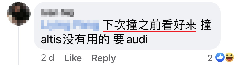 回过神来,看到那个 Audi 被我撞剩下3个圈,还有一个掉在地上了。那个时候我突然发现我自己闯大祸了,我头皮发麻,这样一撞是得赔多少钱,我真的差点哭了起来。我辛苦打工要去新加坡读书的生活费就没了,而且还要倒贴不知道多少。