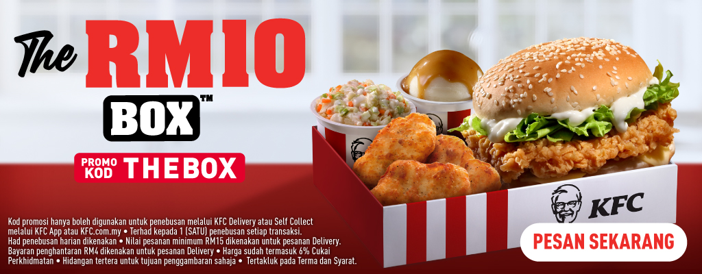 大马 KFC 即日起推出3项折扣优惠,只要通过 KFC 官网或 KFC App 订购指定餐点就可享有10%折扣!还有还有!THE BOX 套餐只需RM10哦!