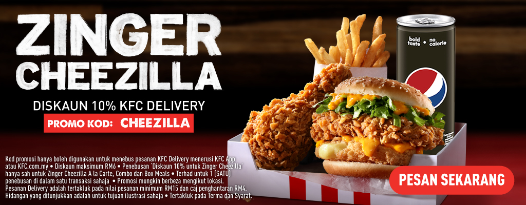 - 优惠中的指定餐点:Zinger Cheezilla Ala Carte、Combo 以及 Box Meals 汉堡套餐。