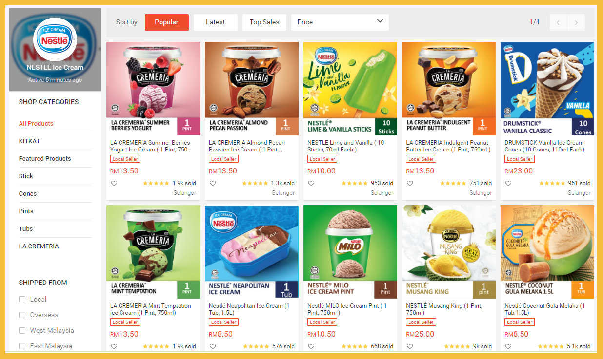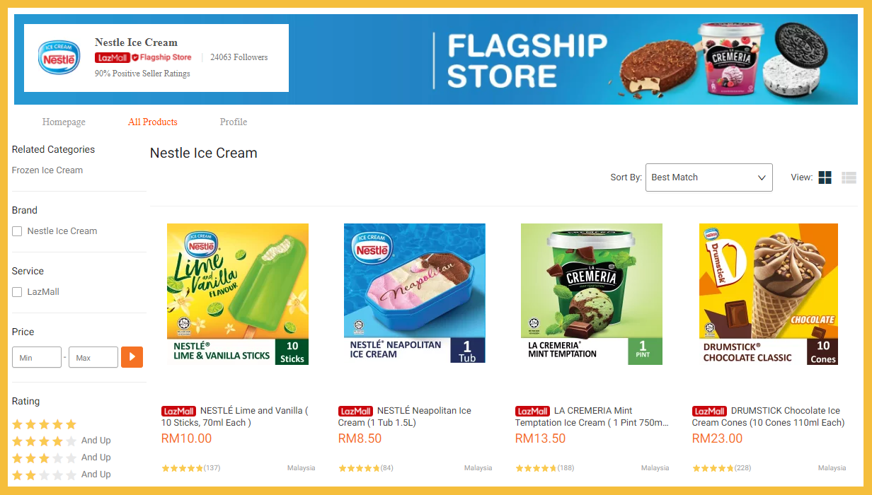① Lazada 的Nestle Ice Cream 官网【点击这里】
