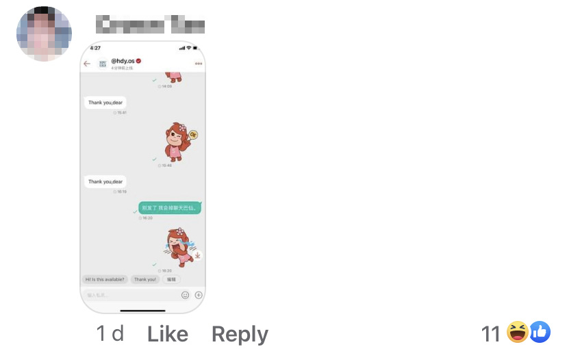 ▼ 接着卖家就开始发送爱心了!比心比心!买家还继续回复!这大概就是… 卖家和买家之间双向的爱!