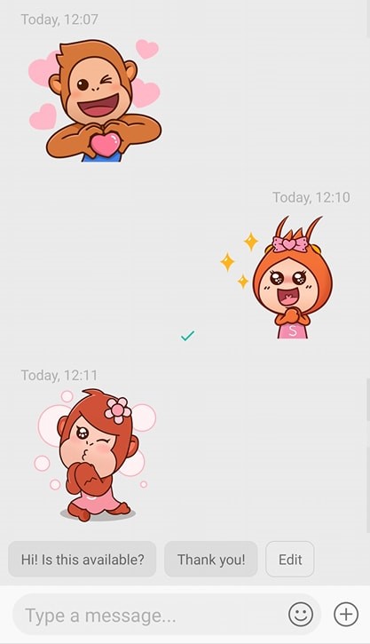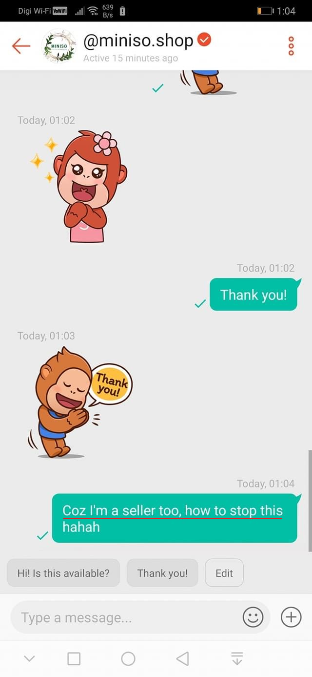 ▼ 卖家先是发了一个给赞的贴图给买家,买家非常客气地回复:「谢谢!」卖家接着又回复了一个贴图!