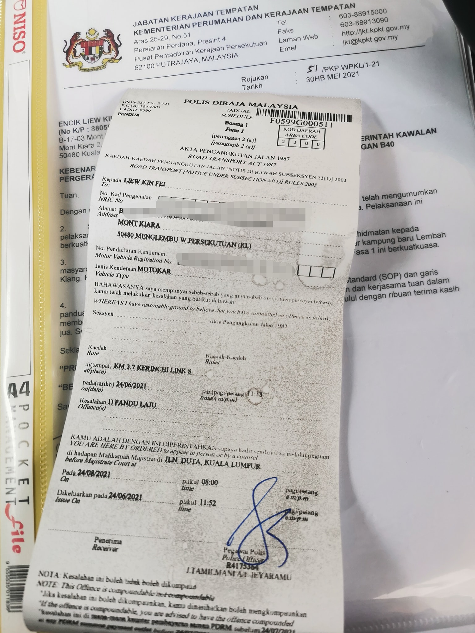 我第一次中 SAMAN 中得那么开心!也是第一次遇到那么正直和态度那么好的警察。