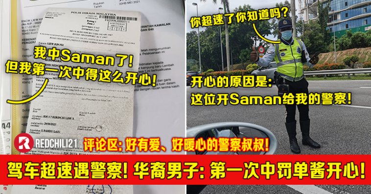 每次中 Saman 的时候,大马人的心里OS都会是:哎呀!今天真是有够衰的!但这名华裔网友中 Saman 却中得很开心,而且开心的原因竟然是开罚单给他的警察?!
