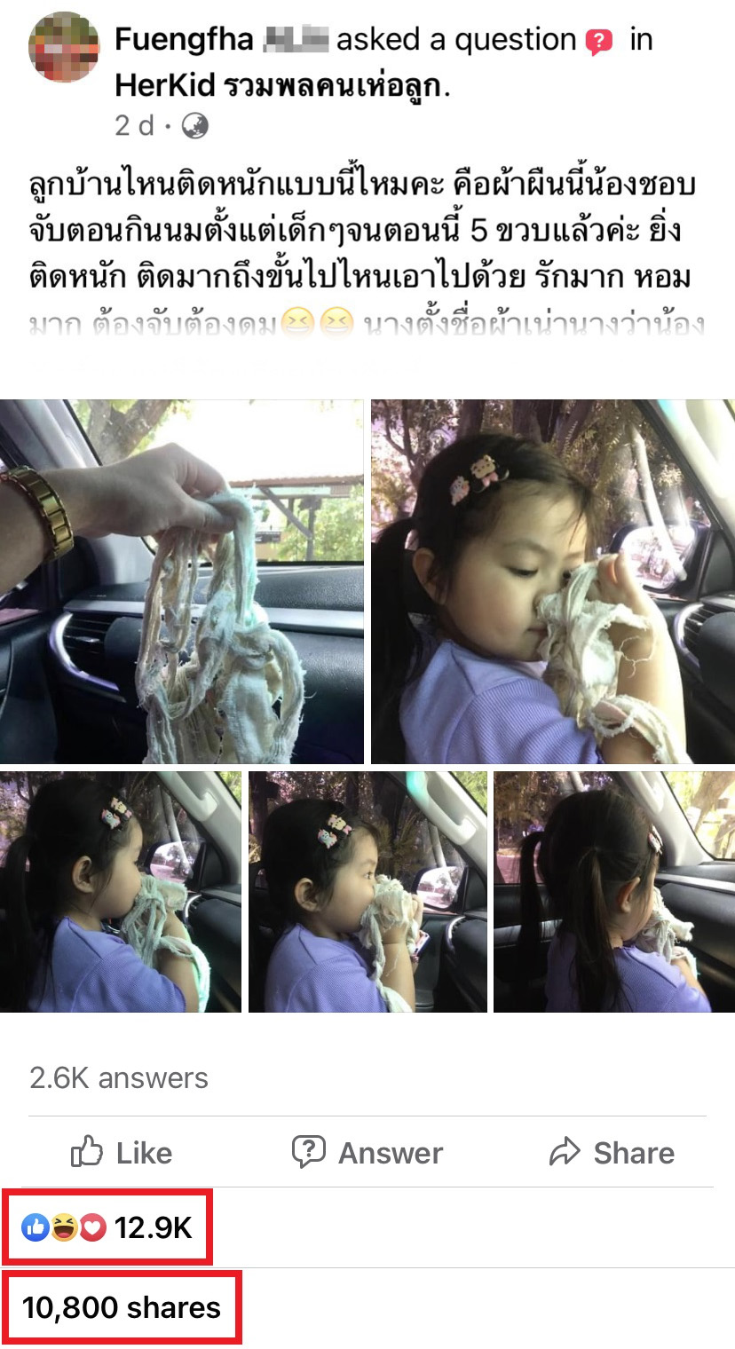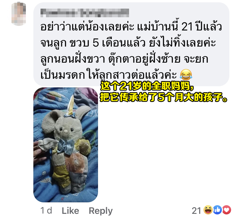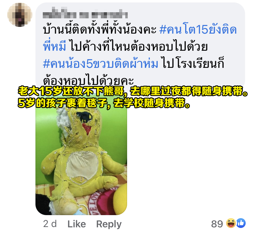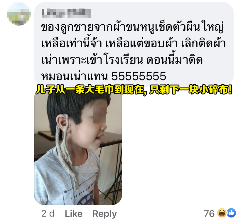 近日一组照片在网上疯传,泰国一个5岁的小妹妹抱着她最爱的“破布”走到哪儿都要带着,照片中的她对“破布”的眼神只有温柔和爱意。该帖子引发很多人的共鸣,短短2天就已经多达10,000次分享!