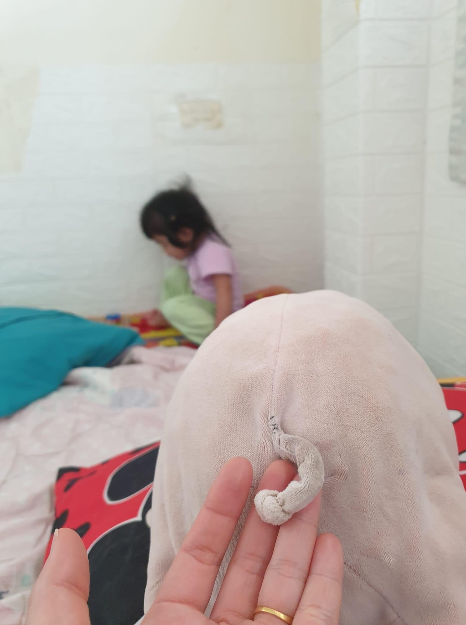 她给她的破布取名为“Nong Kid”,每次妈妈都是偷偷拿去洗。满屋的洋娃娃不喜欢,就独爱这条破布!