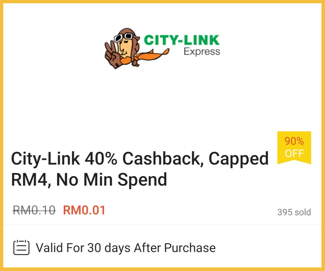 ② City-Link 40%现金回扣礼券(可获高达RM4)- RM0.01