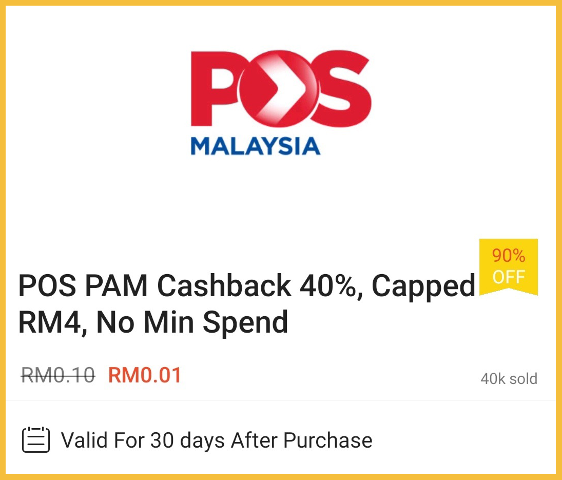 ① POS PAM 40%现金回扣礼券(可获高达RM4)- RM0.01