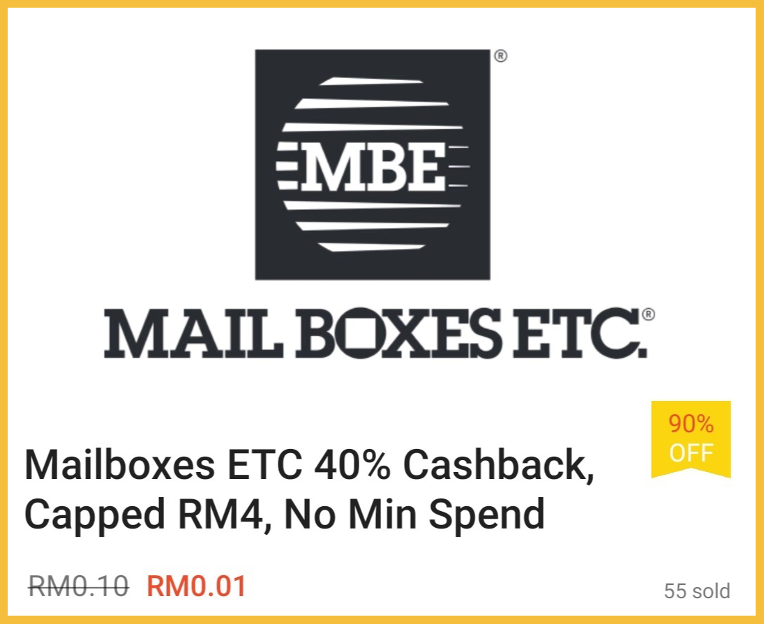④ Mailboxes ETC 40%现金回扣礼券(可获高达RM4)- RM0.01