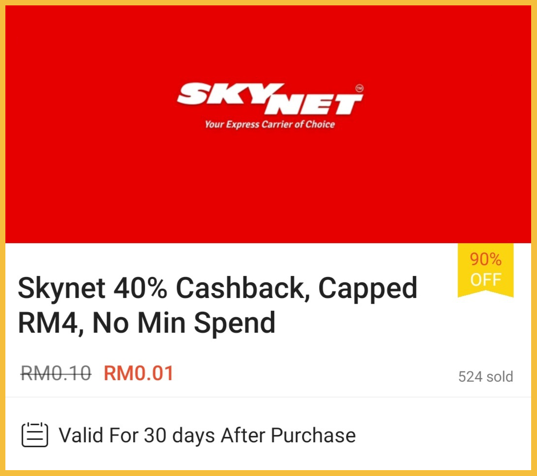 ③ Skynet 40%现金回扣礼券(可获高达RM4)- RM0.01