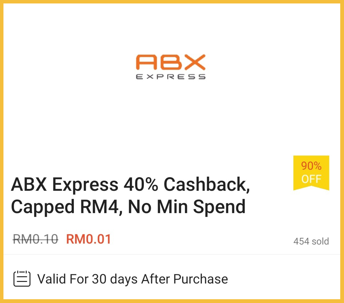 ⑤ ABX Express 40%现金回扣礼券(可获高达RM4)- RM0.01