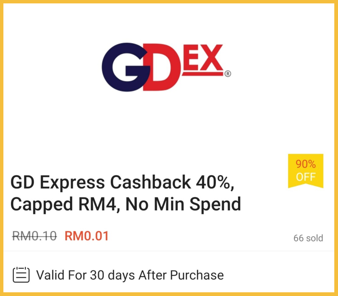 ⑥ GDEX 40%现金回扣礼券(可获高达RM4)- RM0.01
