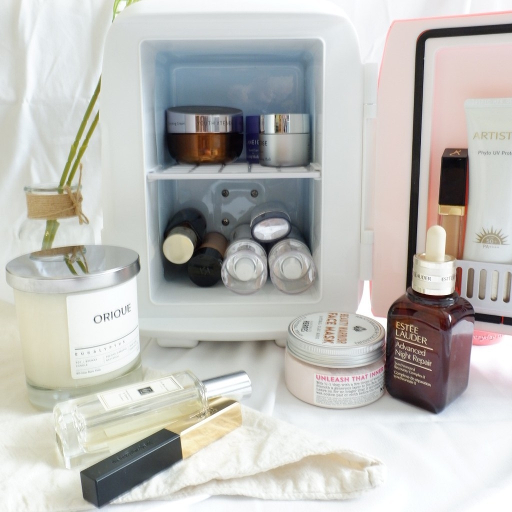 倘若不想把蔬菜水果和护肤品存放同个冰箱的话,那不妨购买一个迷你冰箱,来专放面膜和保养品吧!体积小且不占位,适合摆放在房间里哦!