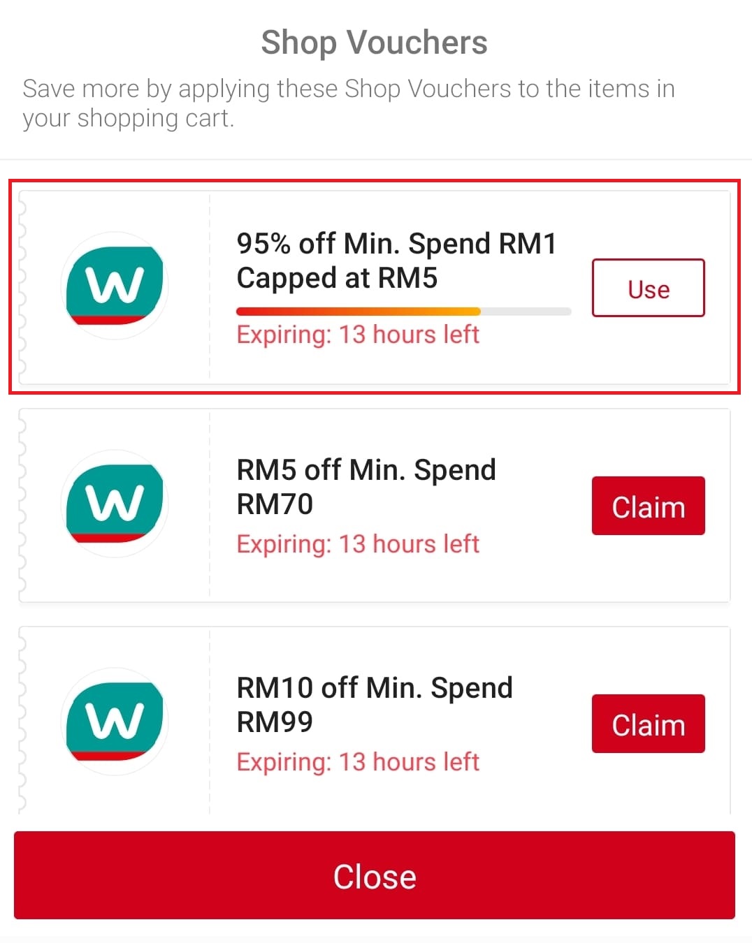 步骤2:打开Shopee Watsons 网店【点击这里】,领取Watsons RM5 折扣券(最低消费RM1)