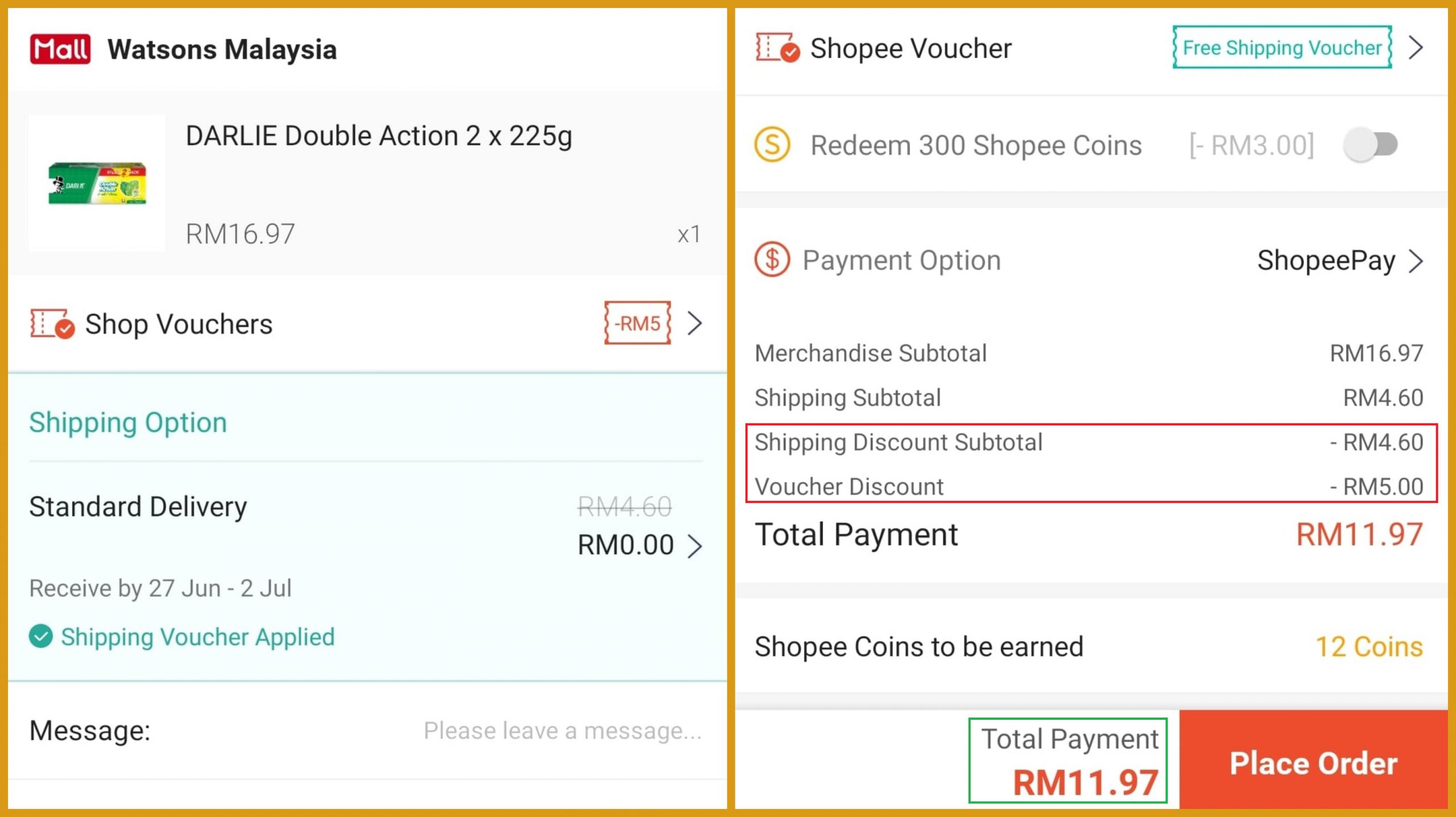 ③ 2支装Darlie 牙膏(原价RM16.97)折扣RM5 优惠券 +免邮券,只需RM11.97!平均一罐只需RM5.99!