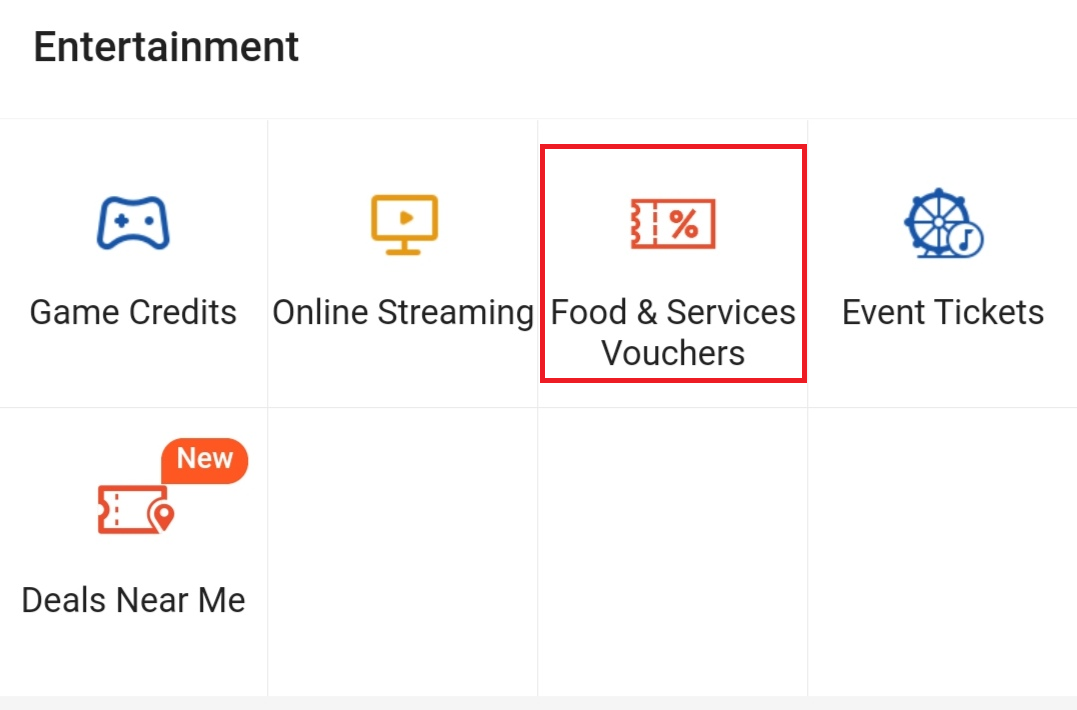 步骤1:打开Shopee App 在Deals,Tops-Ups & Bill 中,点击「Food & Service Vouchers」!