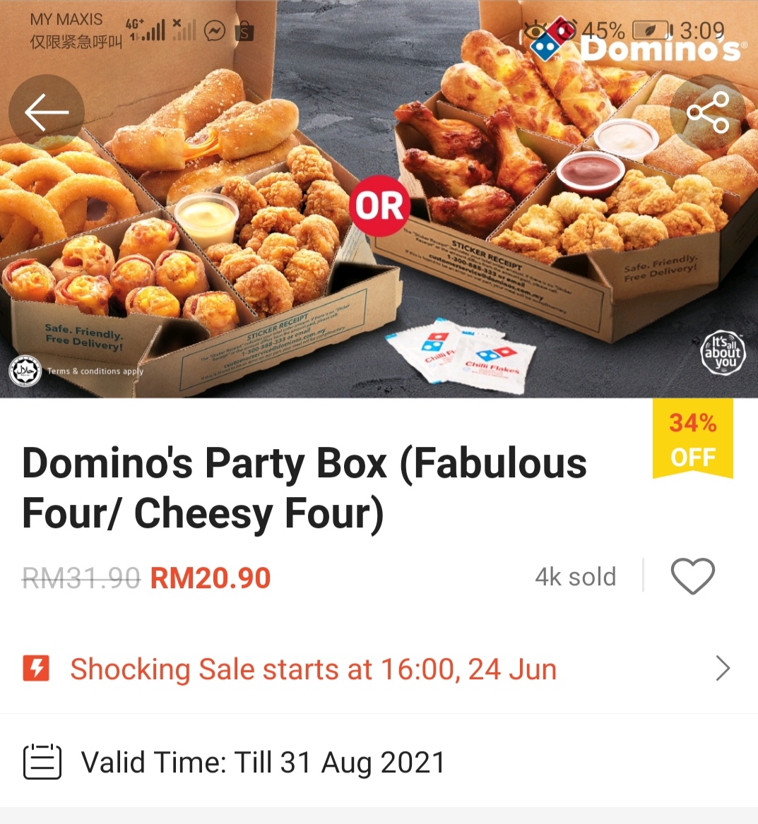 ▼ Domino’s Party Box(Fabulous Four/Cheesy Four)- RM20.90