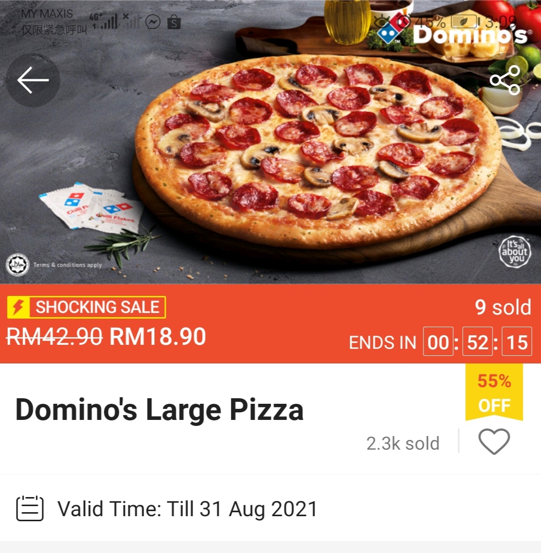促销活动:Domino’s Pizza 与Shopee 联合推出超值优惠券