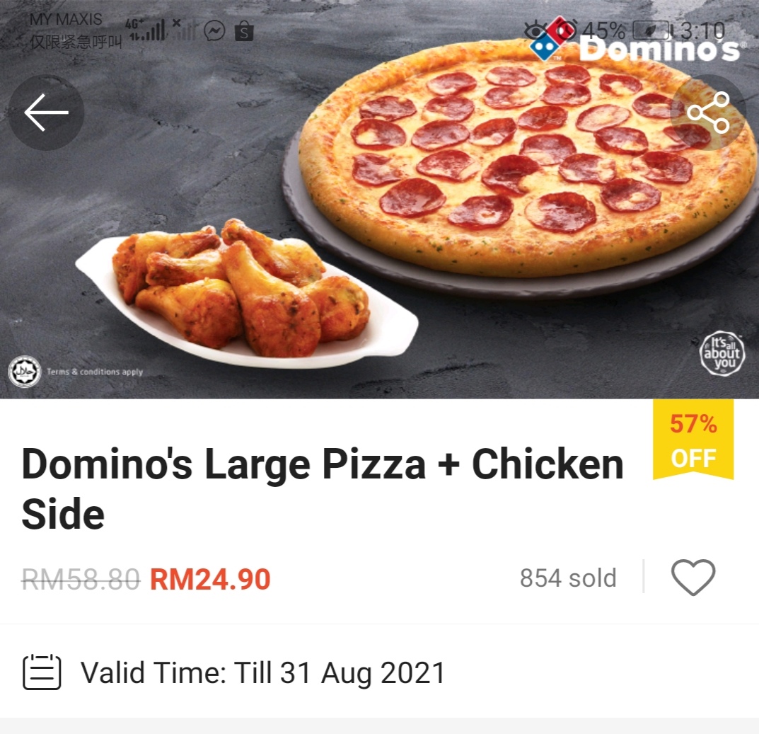这么超值优惠,你怎能不买呢?!喜爱吃Domino’s Pizza 的朋友,可趁这次机会购买哦!